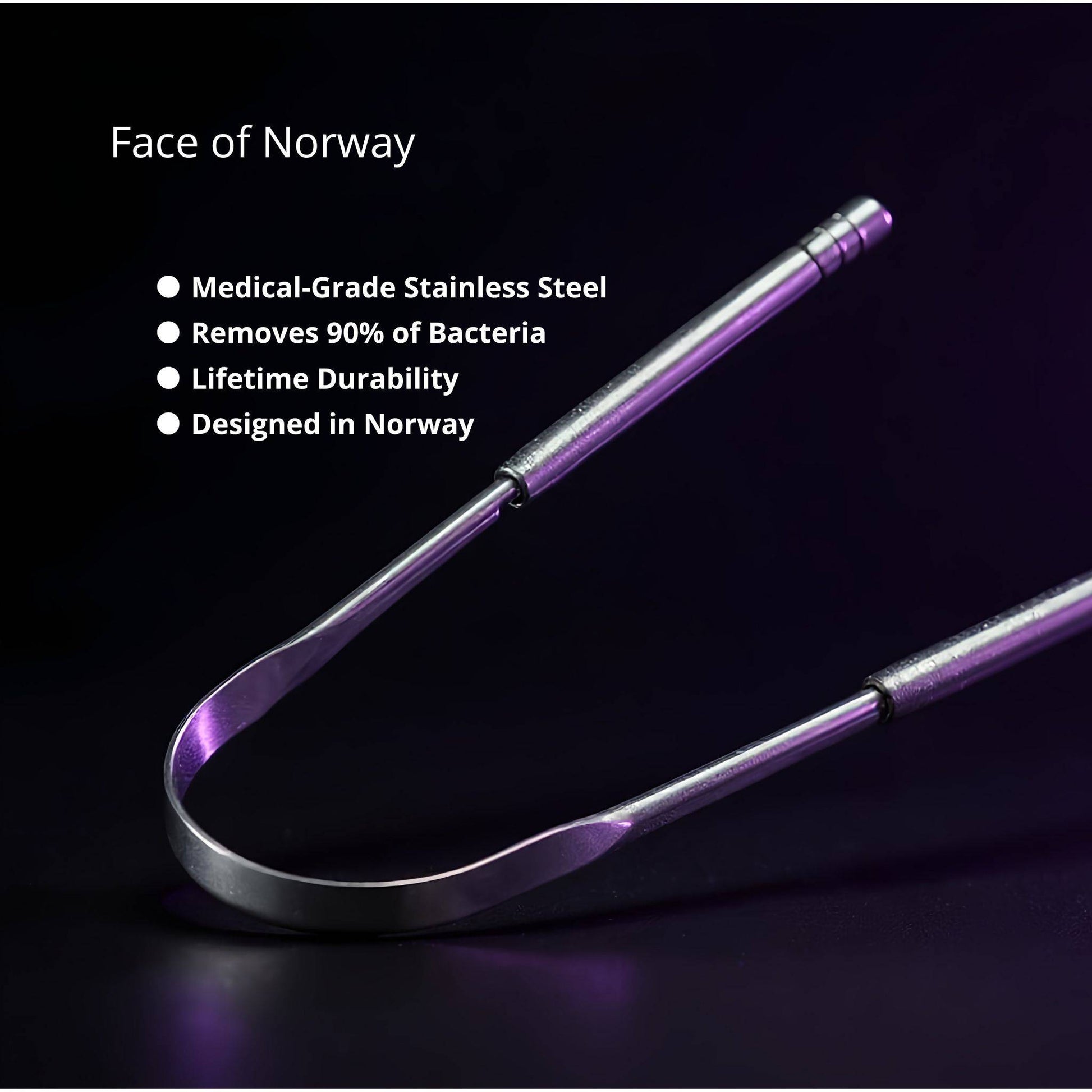Face of Norway bringer skandinavisk designfilosofi til daglig velvære. Vår tungeskrape er designet i Oslo med nordisk minimalisme: rene materialer, tidløs form, null avfall.